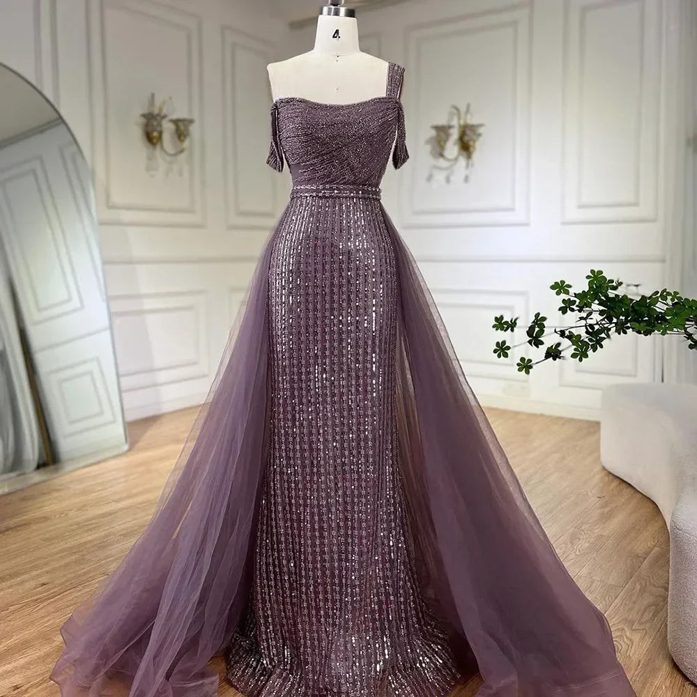 Gold Mermaid Elegant One Shoulder Overskirt Beaded Luxury Evening Dresses Gowns 2025 For Women Wedding Party LA72453