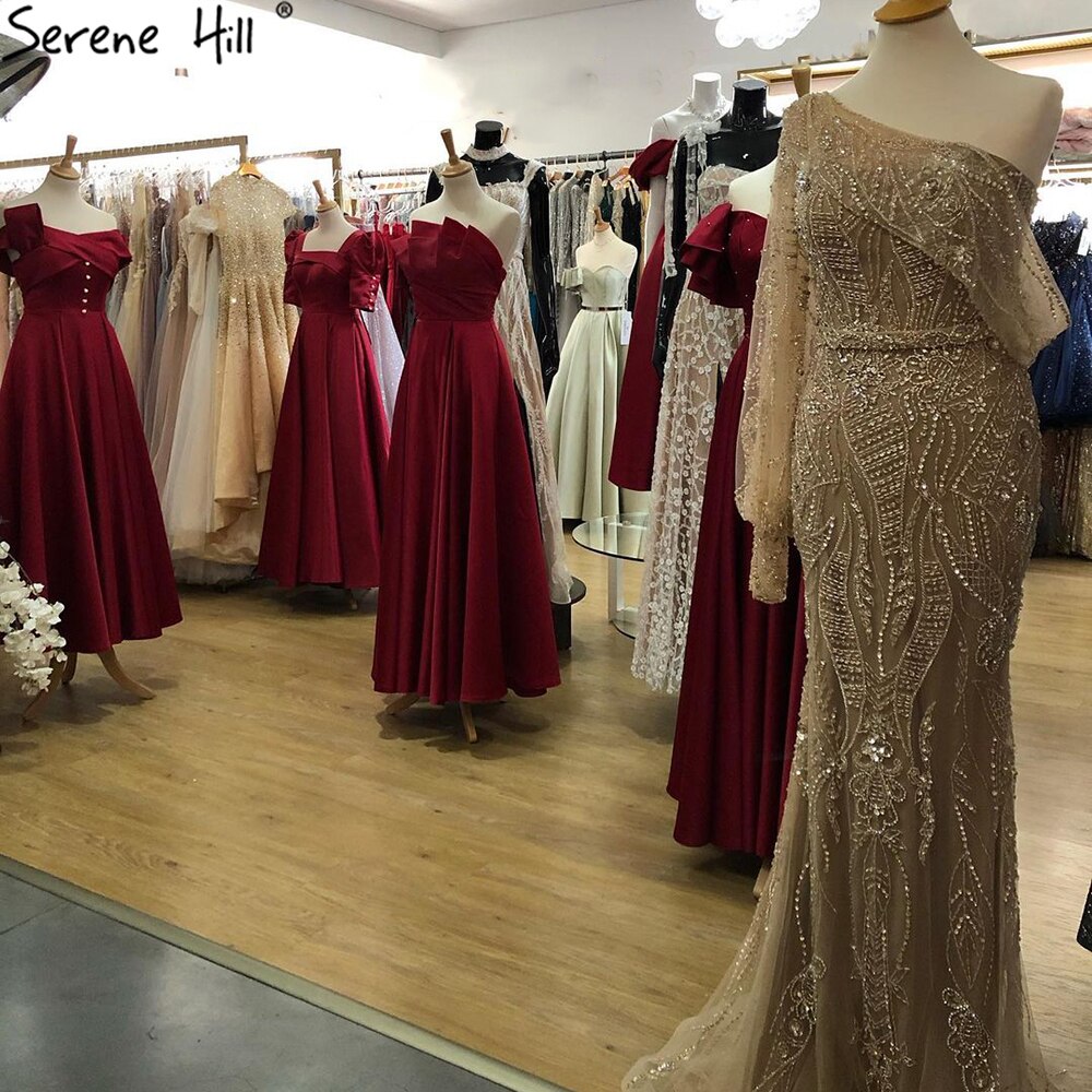 Gold Mermaid Luxury Evening Dresses Gowns 2025 Elegant Beaded One Shoulder For Women Party LA71218
