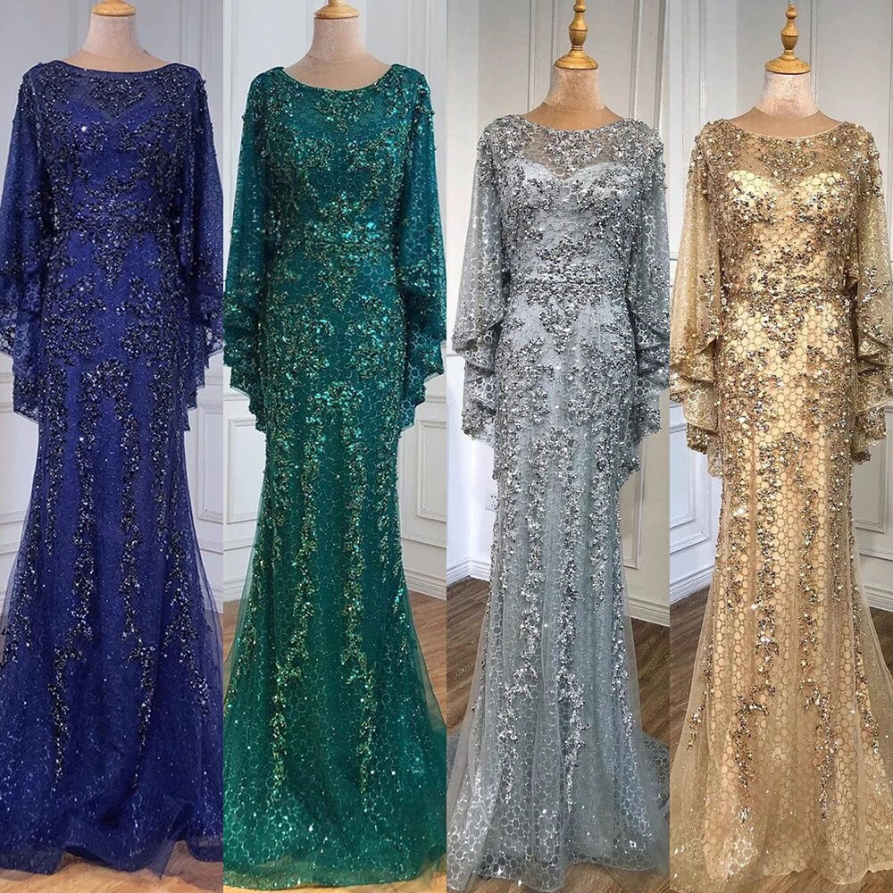 Gold Plus Size Mermaid Elegant Luxury Evening Dresses Gowns 2025 Pearls Beaded With Cape For Women Party LA70738