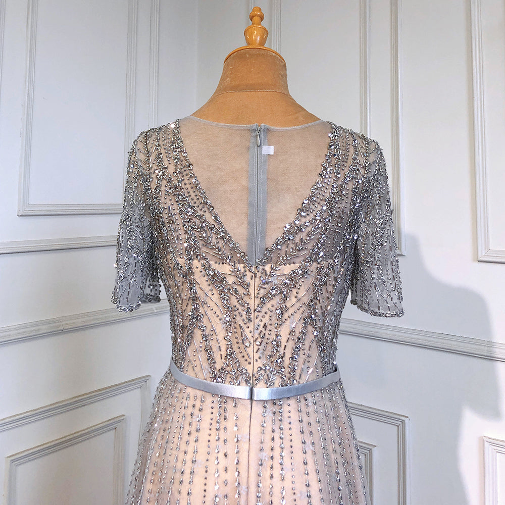 Gold Short Sleeves Evening Dresses Gowns 2025 Luxury Beaded A-Line For Woman Party LA71602