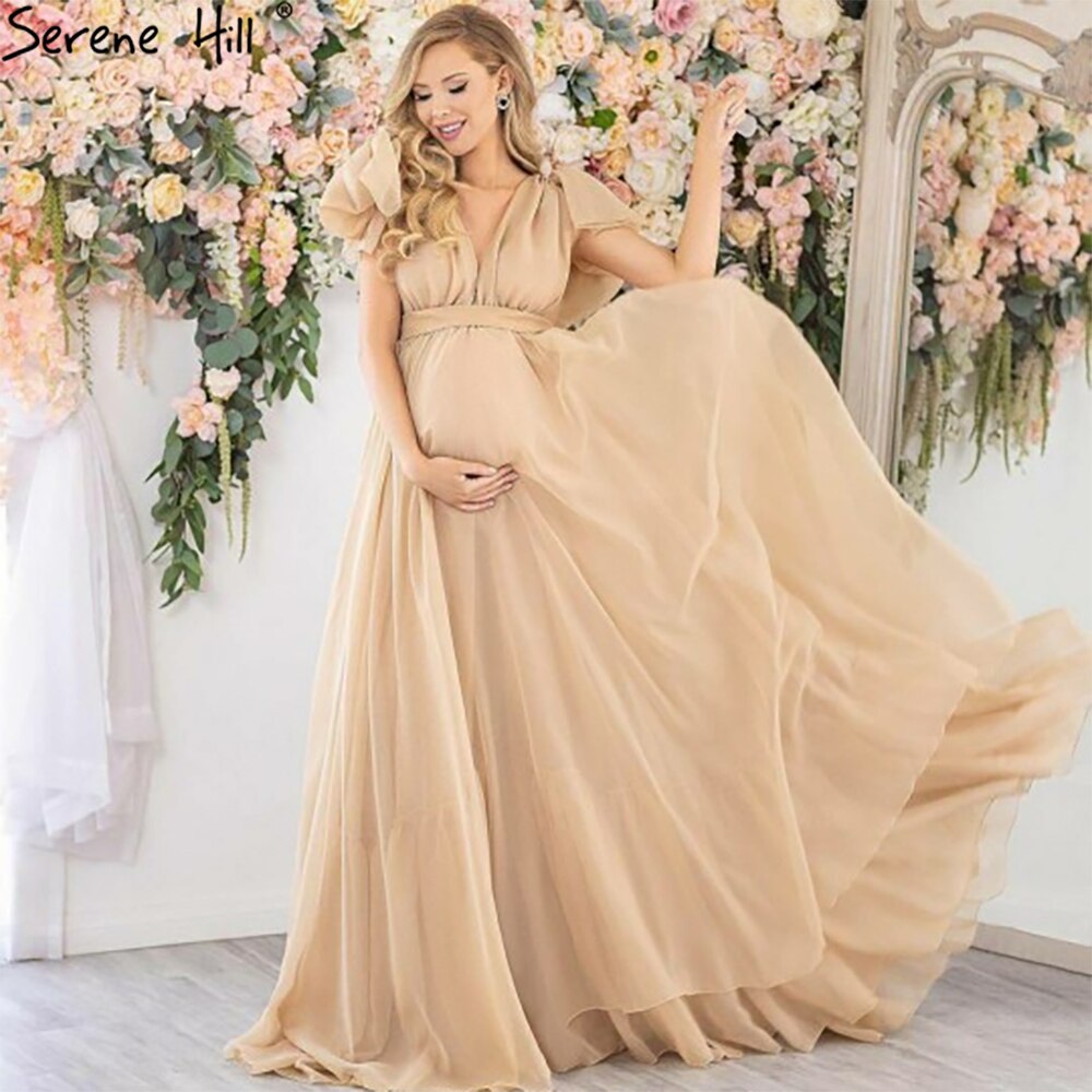 Gold Simple Short Sleeves Evening Dresses Gowns 2025 Pregnant Photography For Women Party HA2518