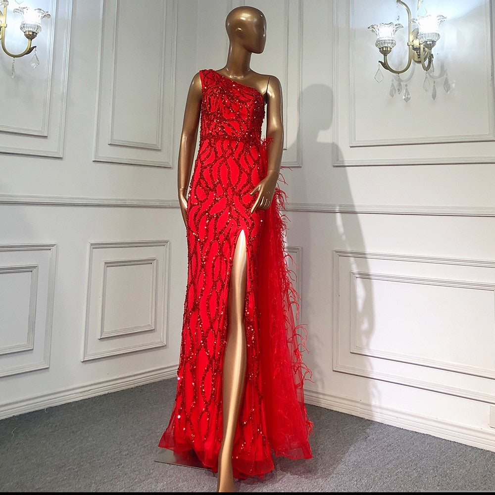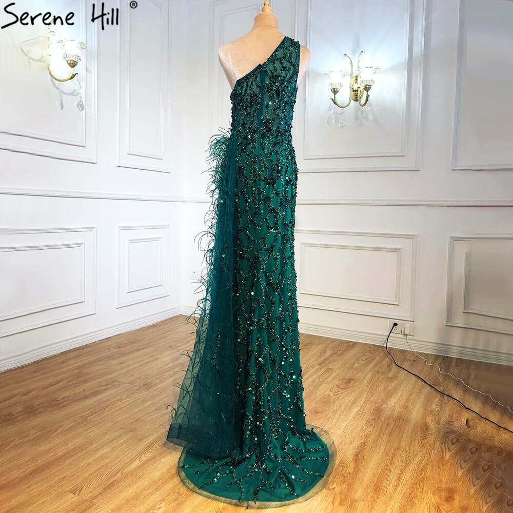 Green Elegant Mermaid Sexy One Shouder Split Evening Dresse Gowns Luxury Beaded Feathers 2025 Women Party LA70829