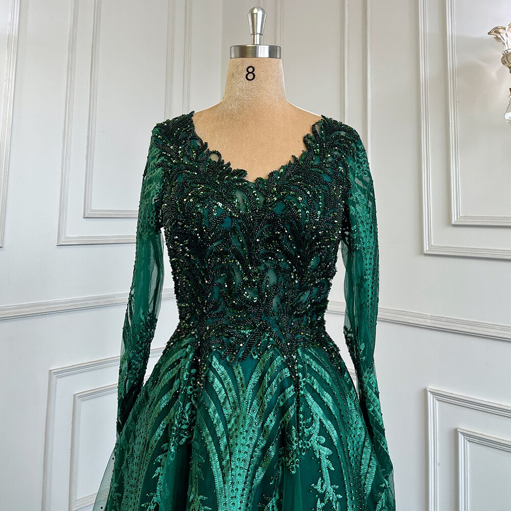 Green Muslim A-Line Sweetheart Evening Dresses Long Arm Gowns Luxury Beaded 2025 For Women Party LA71704