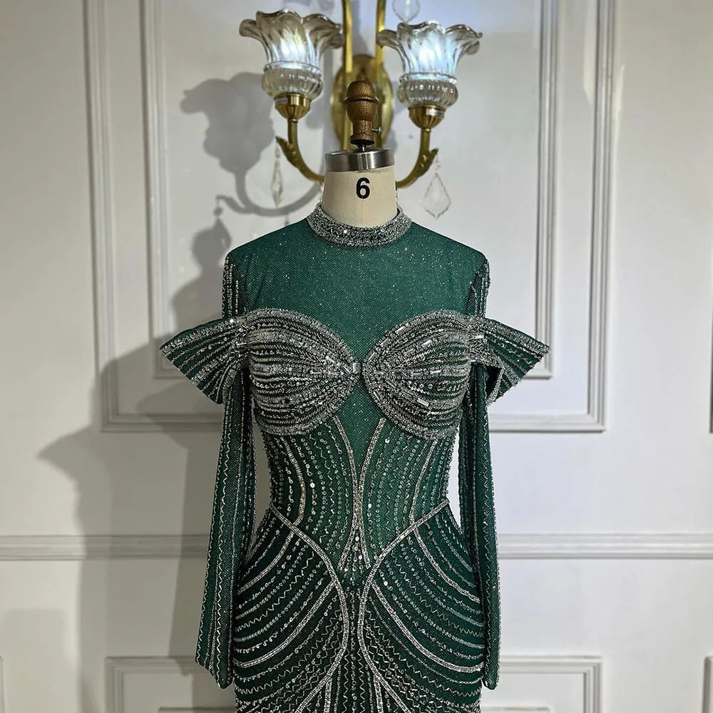 Green Muslim Elegant Mermaid Beaded Luxury Dubai Evening Dresses Gowns for Woman Wedding Party 2025 LA72547
