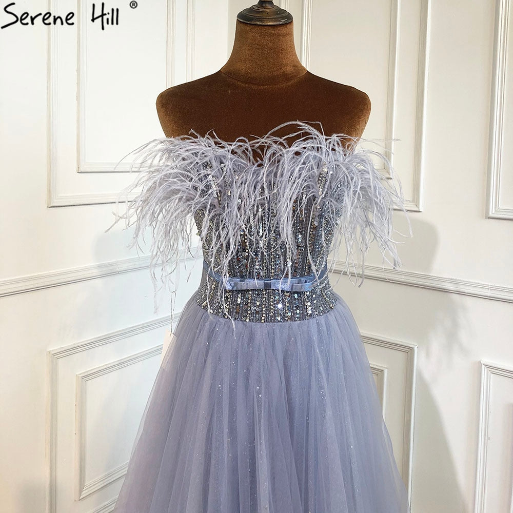 Grey A-Line Luxury Evening Dresses Gowns 2025 Beaded Feather Sexy For Women Wedding Party LA70803
