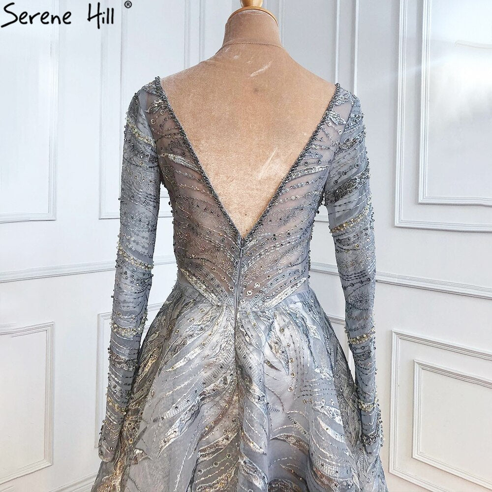 Grey A-Line Luxury Evening Dresses Gowns 2025 Lace Beaded Crystal Sexy For Woman Party LA71171