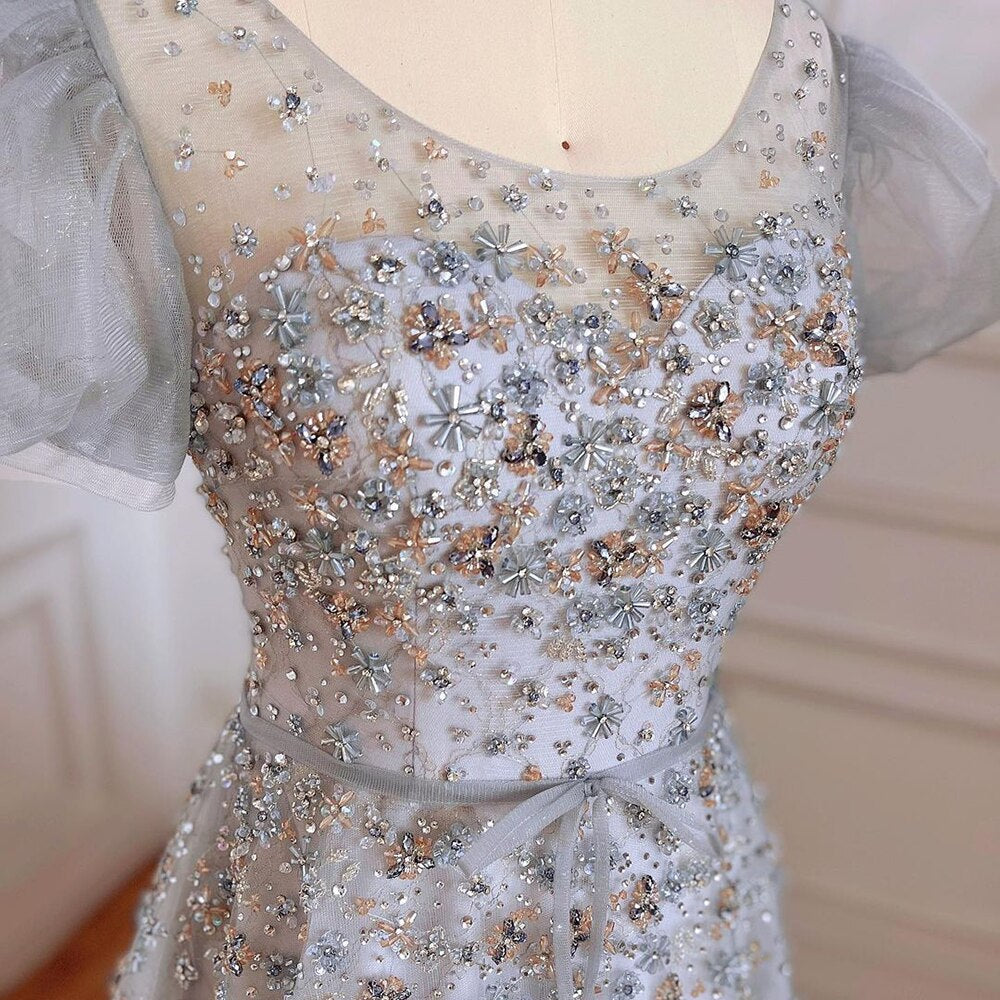 Grey A-Line Sexy Floor Length Beaded O Neck Luxury Evening Dresses Gowns For Women Arabic Party 2025 LA71839