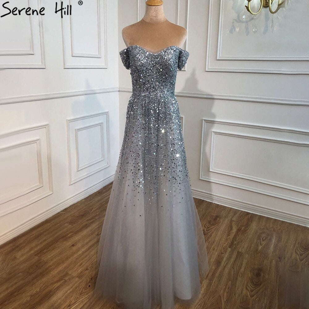 Grey Luxury A-Line Evening Dresses Gowns 2025 Beaded Bling Sexy For Women Wedding Party LA71188
