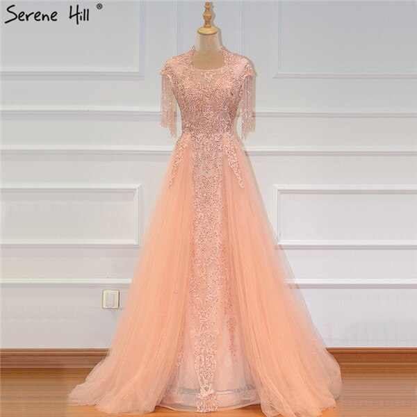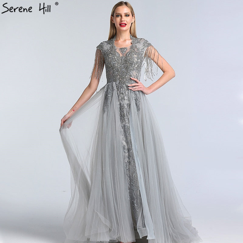 Grey Luxury With Train Evening Dresses Gowns 2025 Cap Sleeves Beading Mermaid For Women Party LA60845