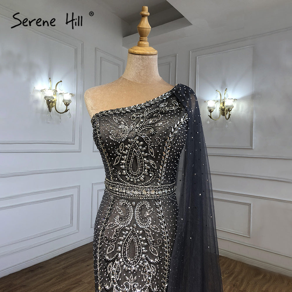Grey Mermaid Elegant Cape Sleeves Evening Dresses Gowns One Shoulder Luxury Beaded 2025 For Women Party LA71270