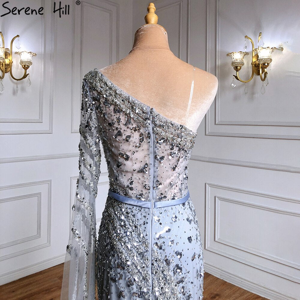 Grey Mermaid Elegant Evening Dresses Gowns 2025 Luxury Beaded Cape Sleeve For Women Party LA71415