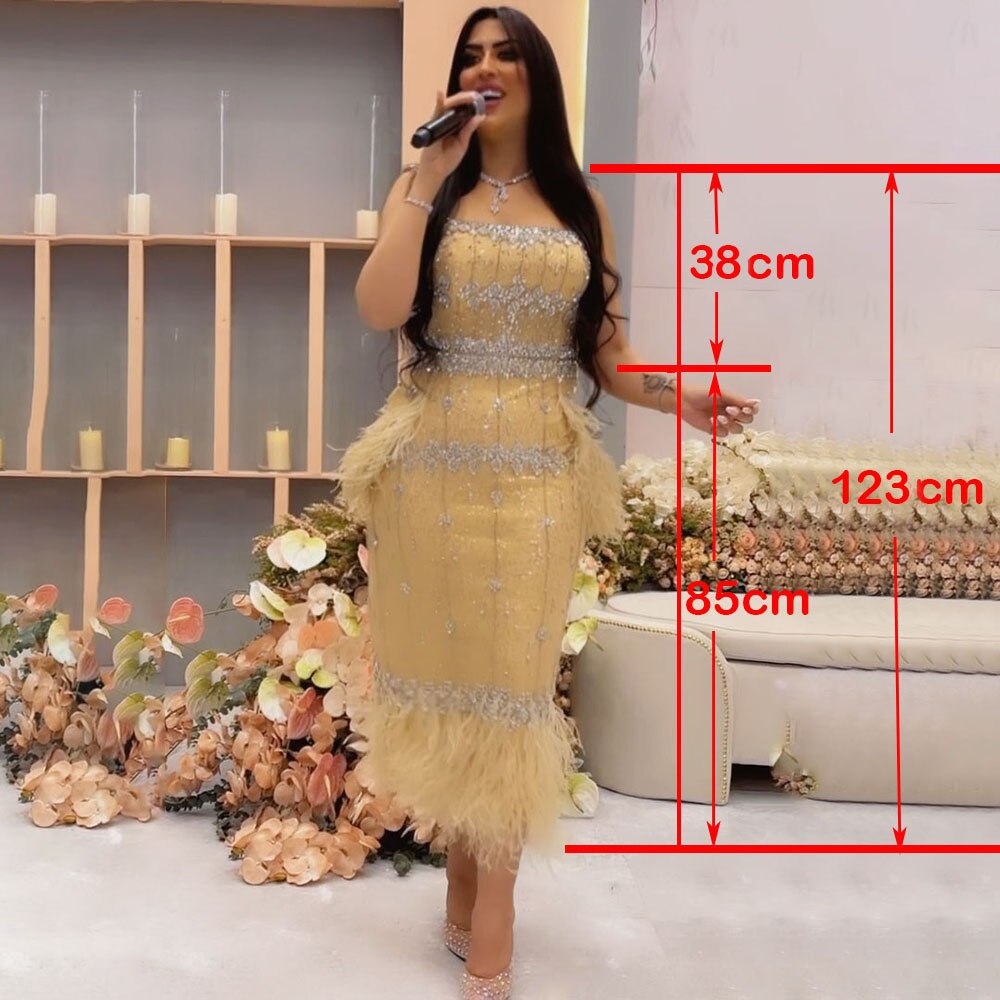 Grey Mermaid Midi Length Evening Dresses Gowns Beaded Sexy Feather Rear Leg Split 2025 For Women Party LA71669