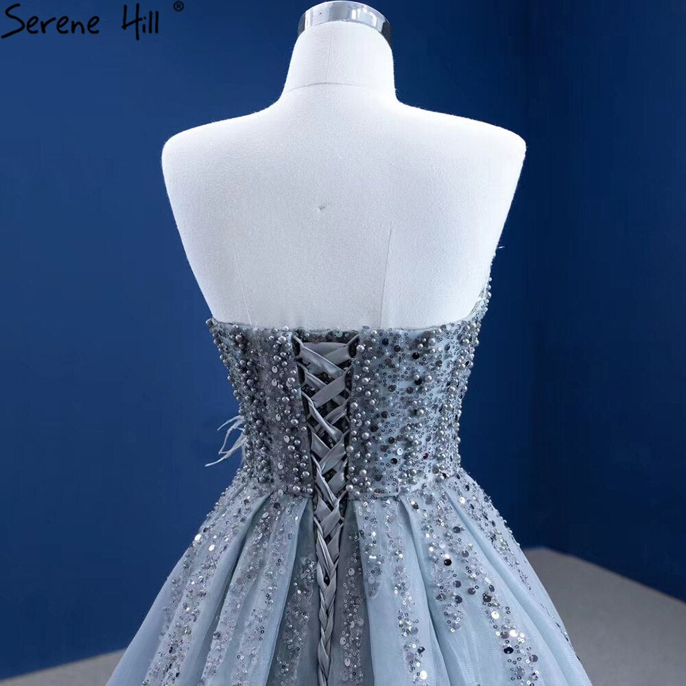 Grey Mermaid Overskirt Evening Dresses Gowns 2025 Feather Beaded Elegant For Women Party HM67340