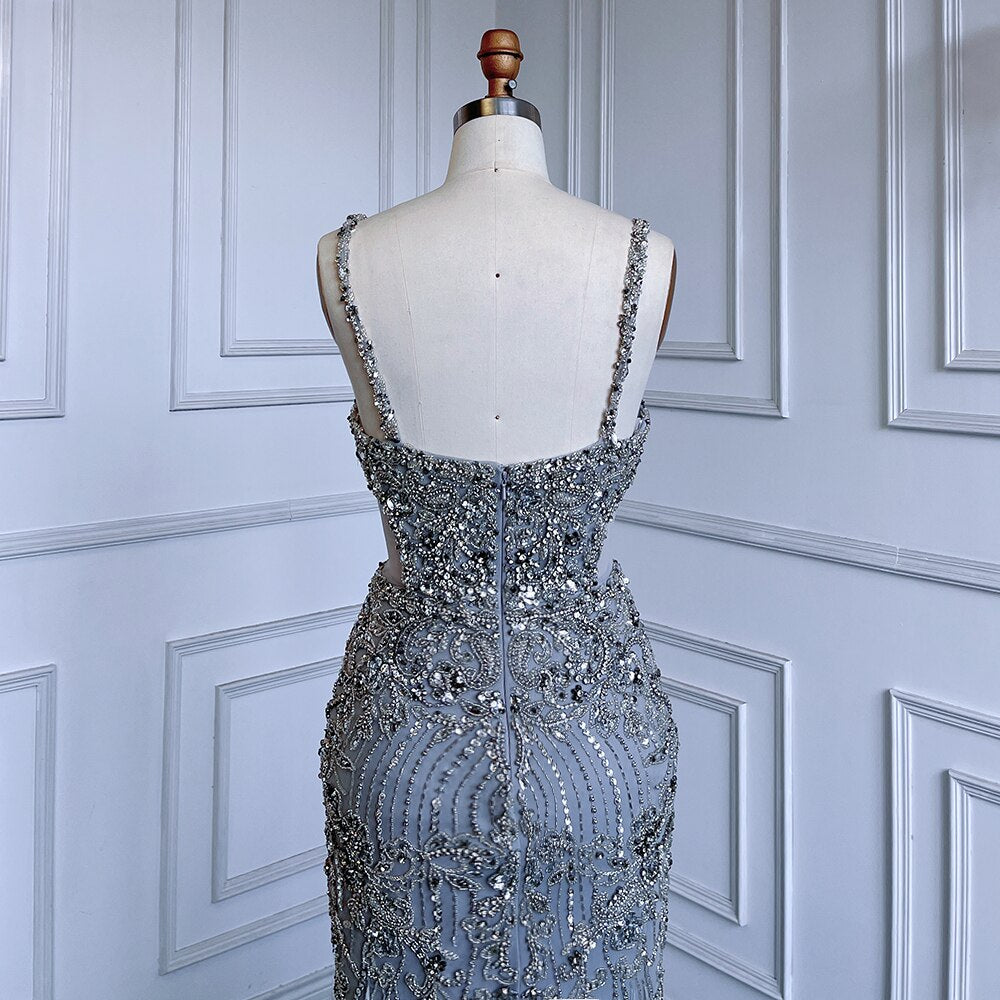 Grey Mermaid Sexy Spaghetti Straps Cut Out Luxury Beaded Feather Dress Evening Gowns 2025 For Woman Party LA71774