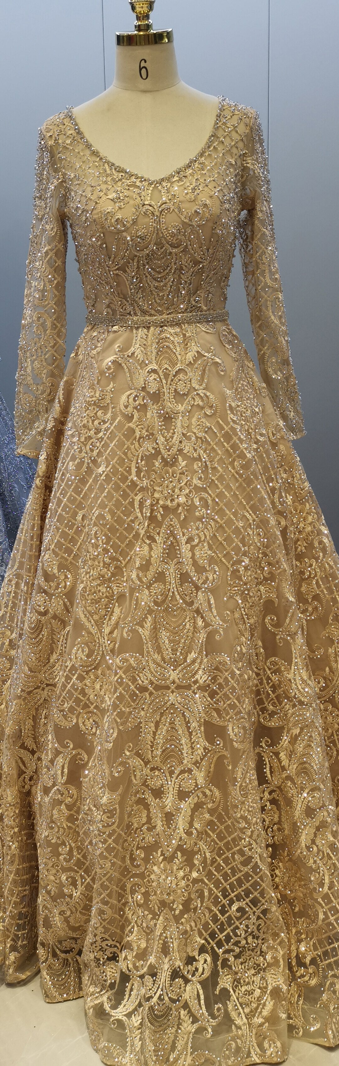 Grey Muslim Lace Beaded Evening Dresses Gowns 2025 Long A-Line Luxury For Women Party LA71472