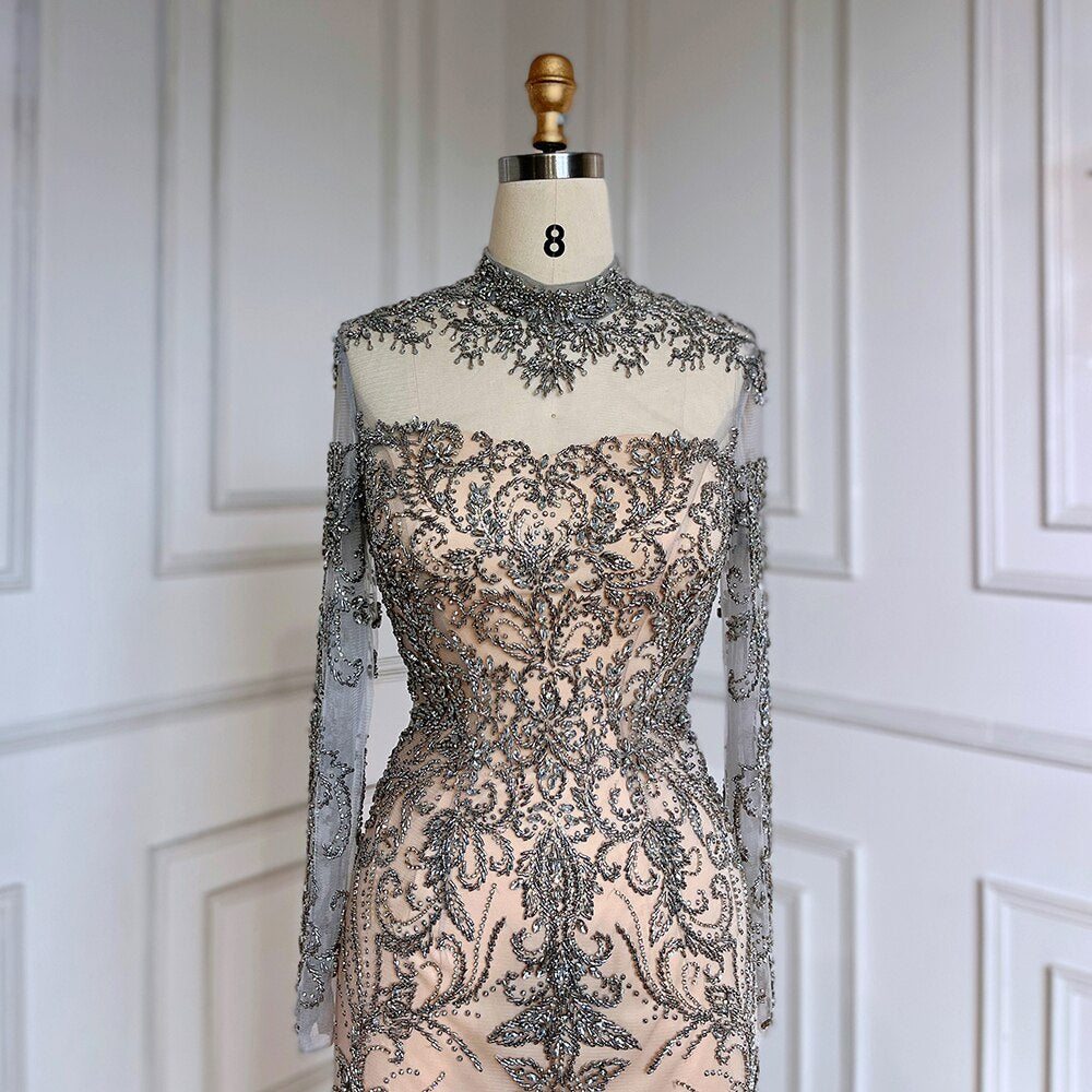 Grey Nude Elegant Mermaid Sexy Lace Beaded Luxury Evening Dresses Gowns For Women Arabic Party 2025 LA71837