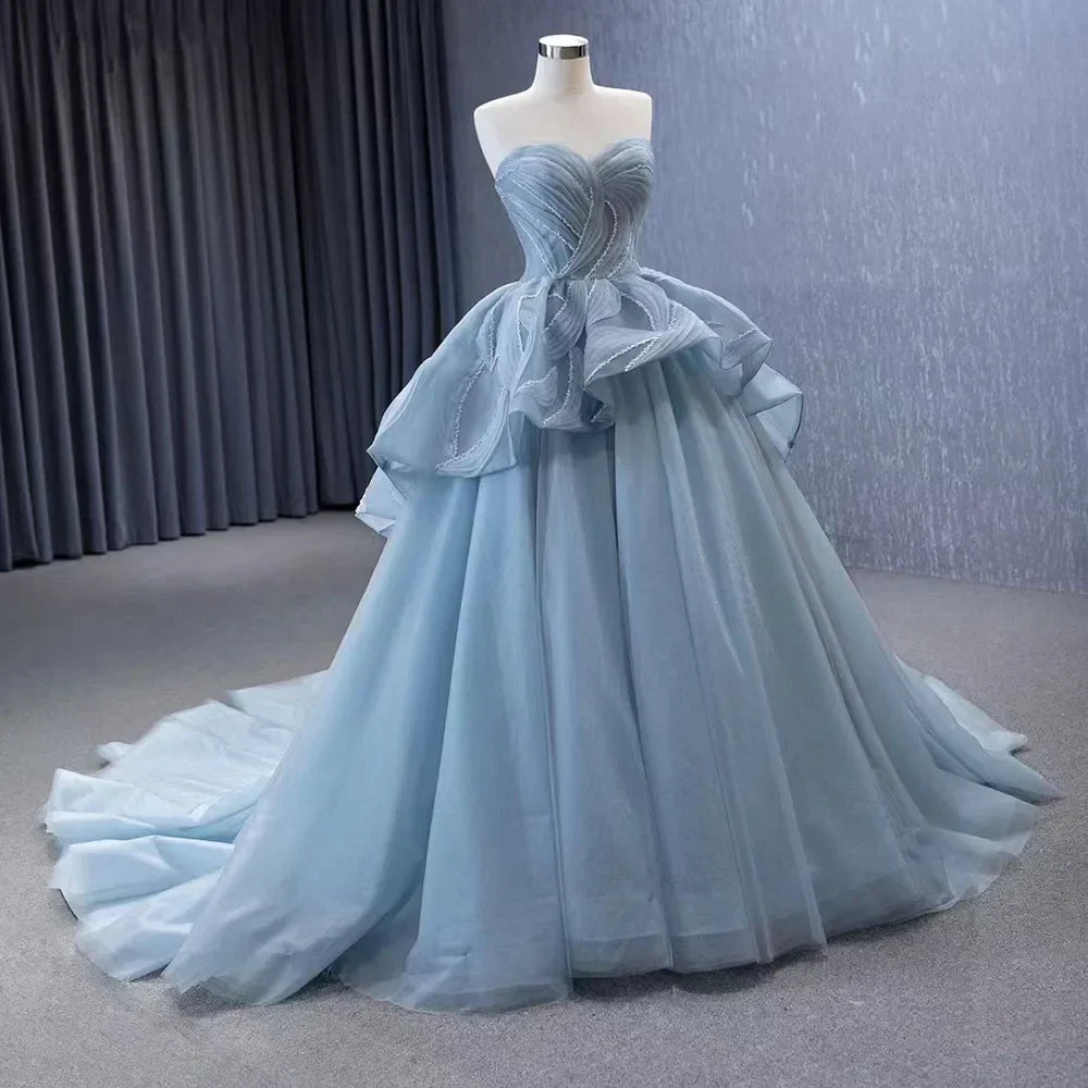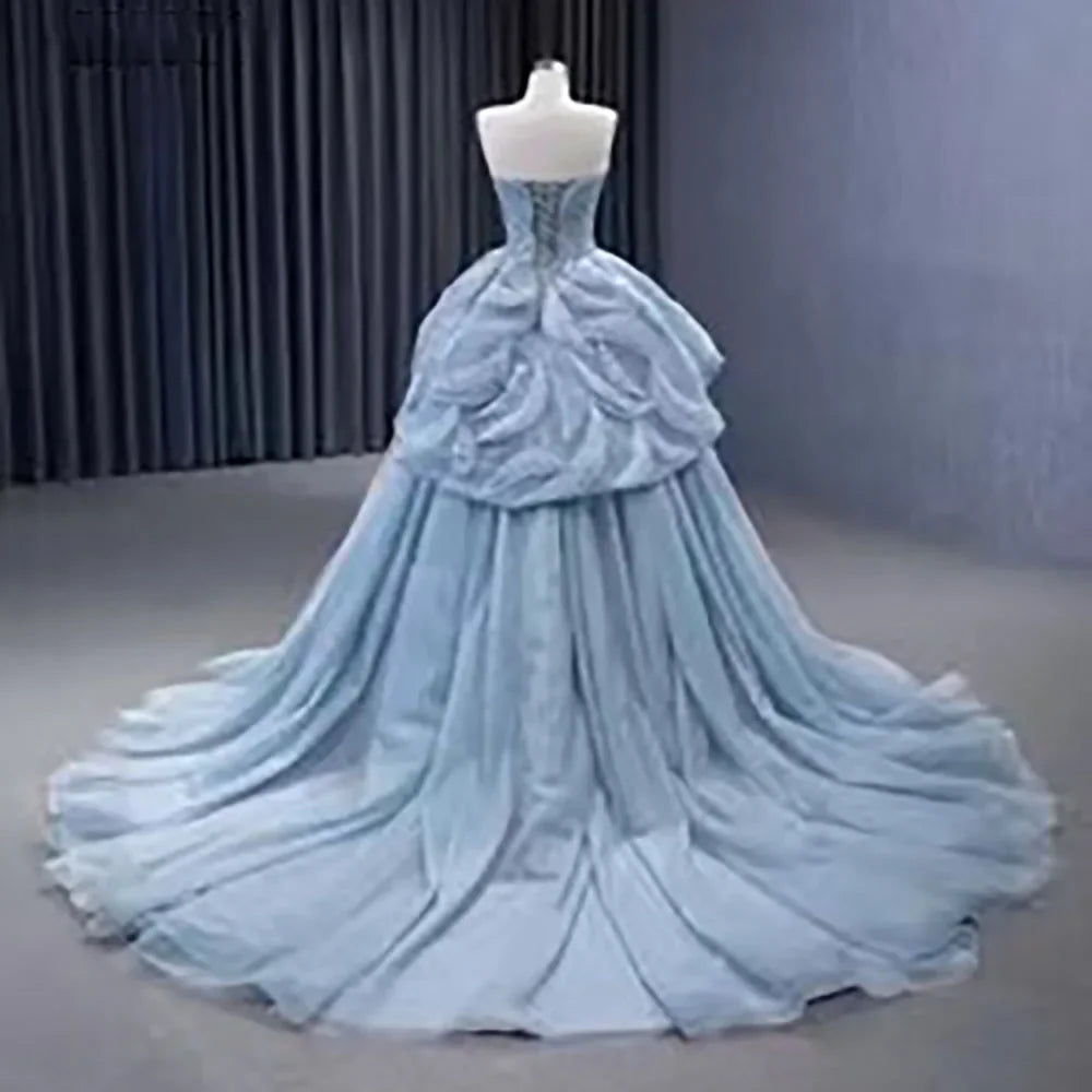High End Custom Made Gray Blue Strapless Lace Up Beaded Luxury Ball Gown Bride Gowns Wedding Dress HM231064