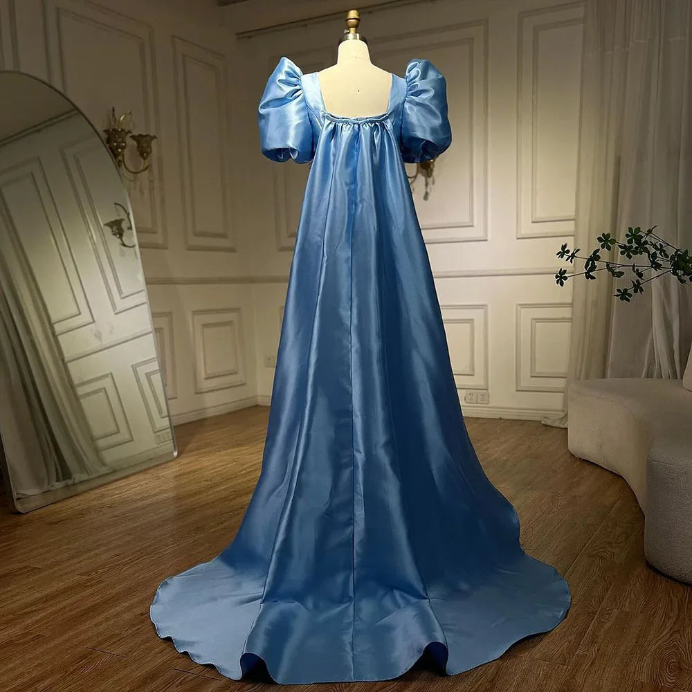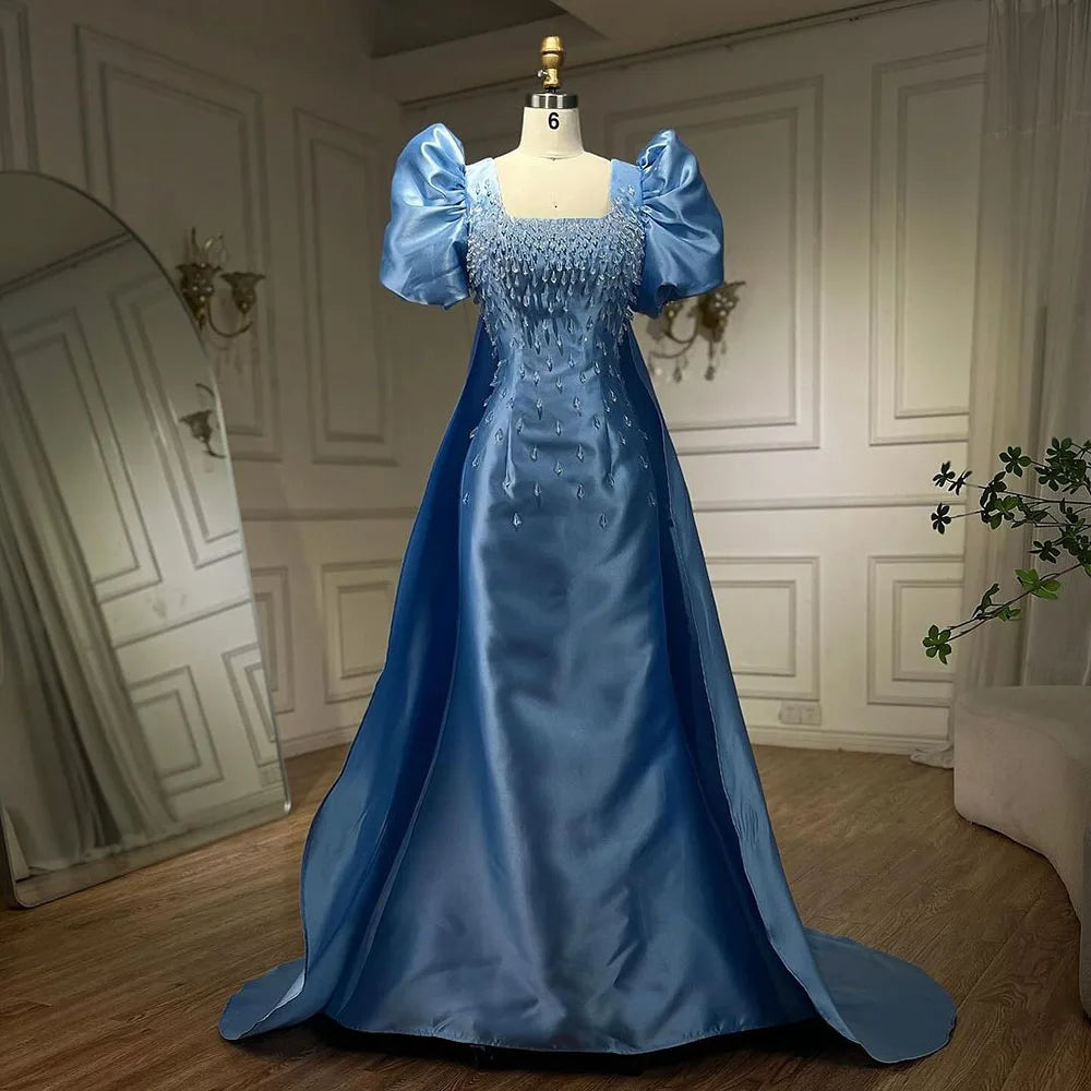 Ivory Satin Mermaid Strapless Puff Sleeves Crystal Beaded Evening Dresses Gowns For Women Wedding Party 2025 LA72217