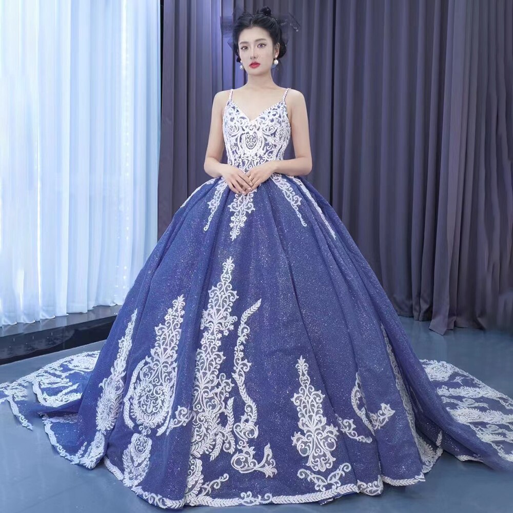 Light Blue Sexy Spaghetti Straps Lace Beaded Lace Up Bride Gowns Wedding Dress 2025 High End Custom Made HM222174