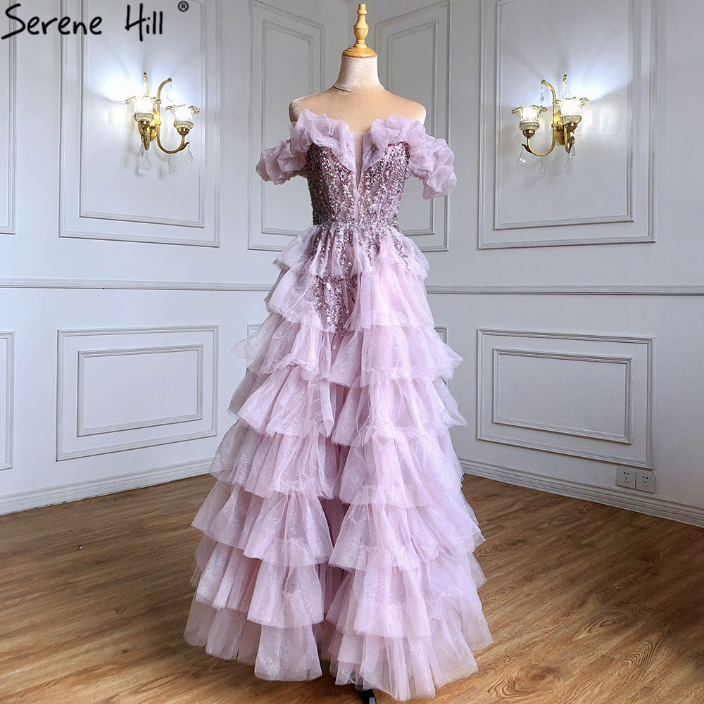 Lilac A-Line Evening Dresses Gowns 2025 Beaded Tiered Sexy For Women Wedding Party LA71414