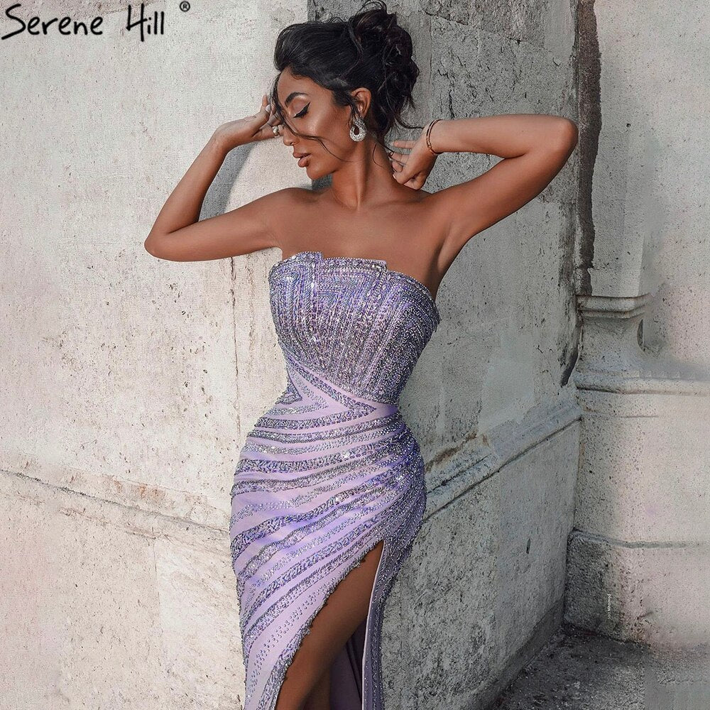 Lilac High Split Meramid Evening Dresses Gowns 2025 Beaded Elegant Luxury For Women Party LA71272