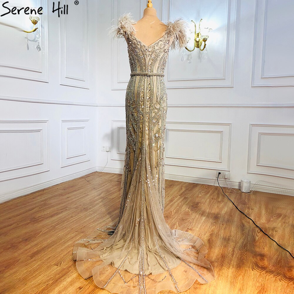Lilac Luxury Beaded Mermaid Evening Dress Gown with Feathers LA70830