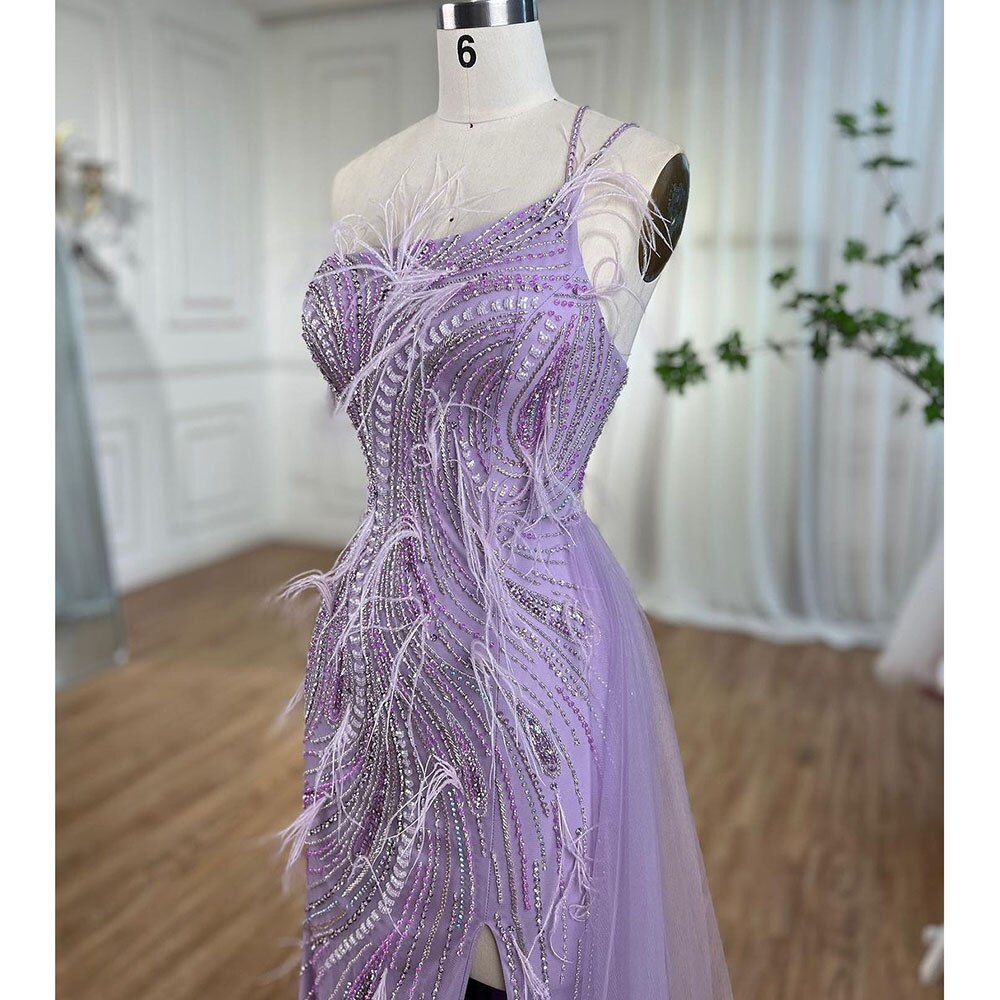 Lilac Mermaid Elegant One Shoulder Feathers Beaded Luxury Evening Dresses Gowns 2025 For Women Wedding Party LA72154