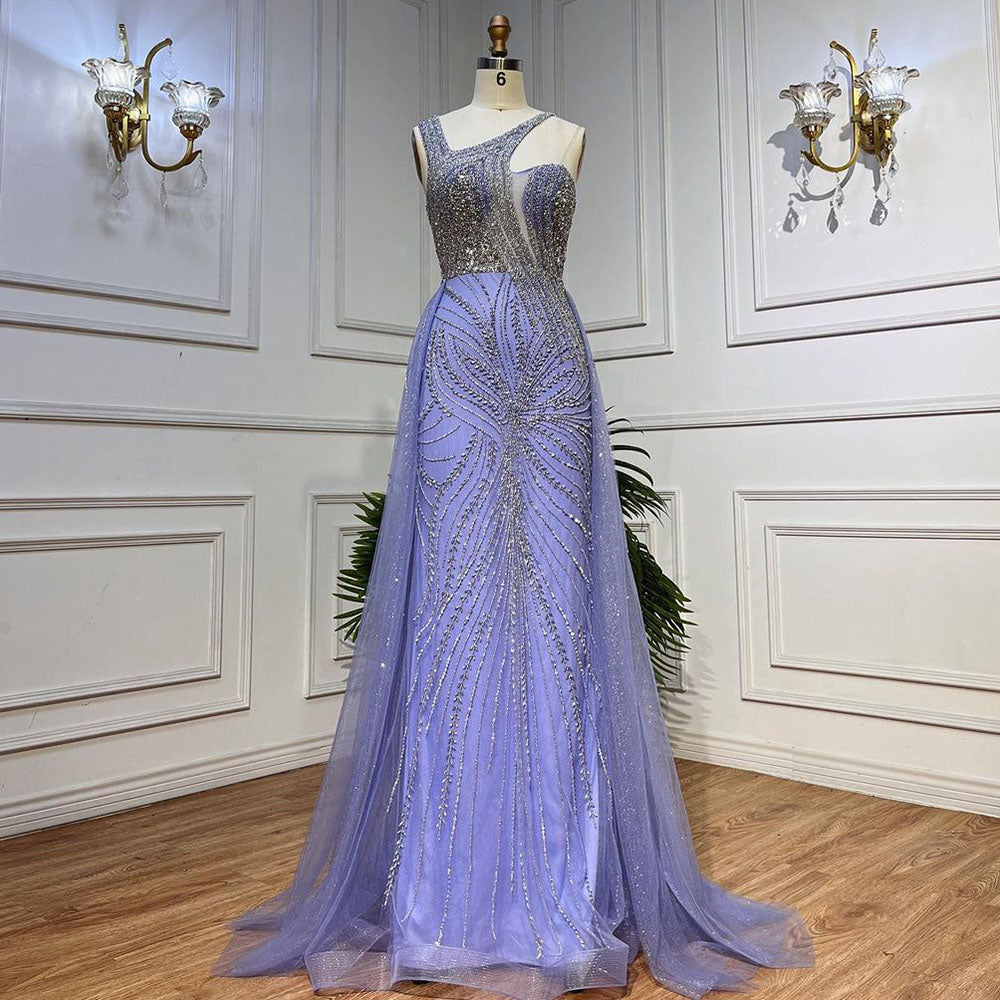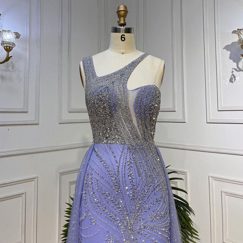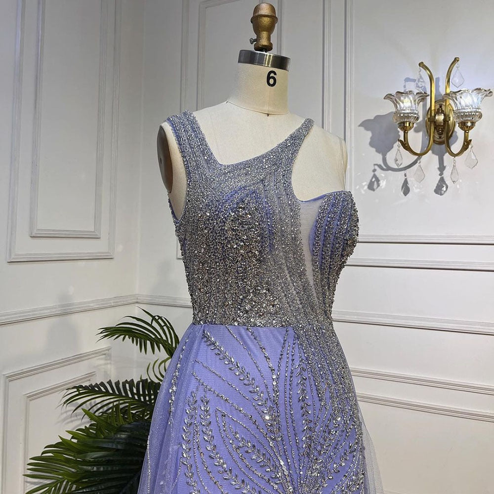 Lilac Mermaid One Shoulder Overskirt Beaded Luxury Evening Dresses Gowns 2025 For Women Wedding Party LA72031