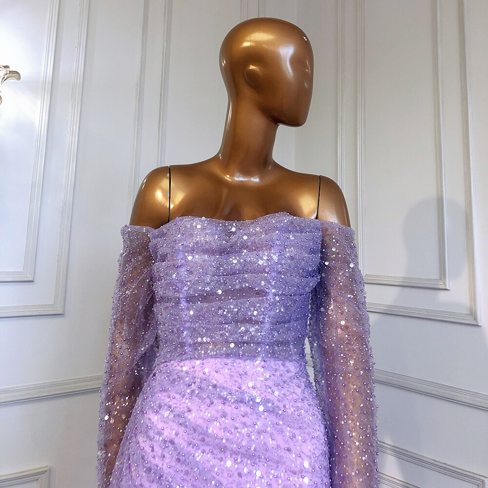 Lilac Mermaid Overskirt Evening Dresses Gowns 2025 Beaded Elegant Sexy For Women Party LA71630