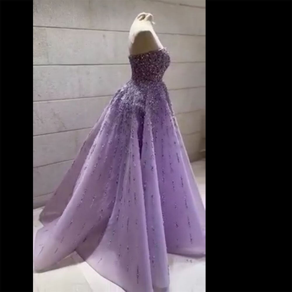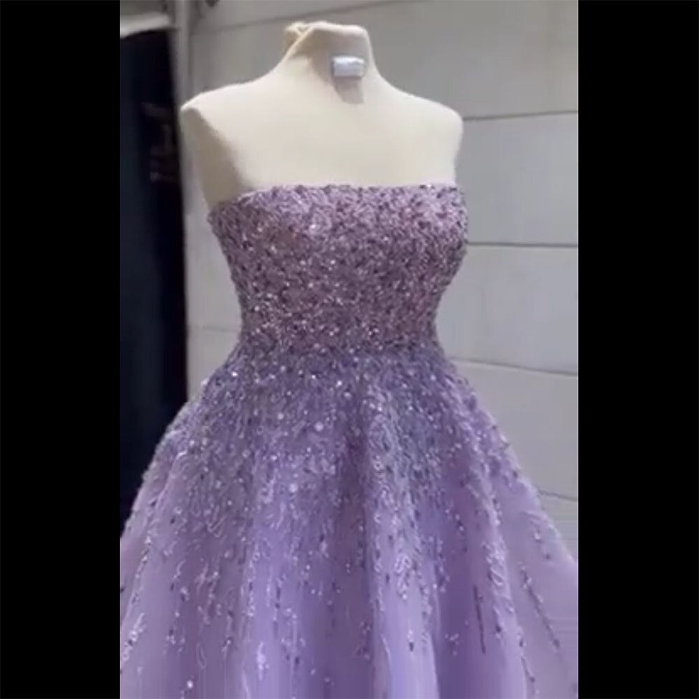 Lilac Strapless A Line Beaded Luxury Dubai Long Evening Dresses Gowns 2025 For Woman Wedding Party LA72119