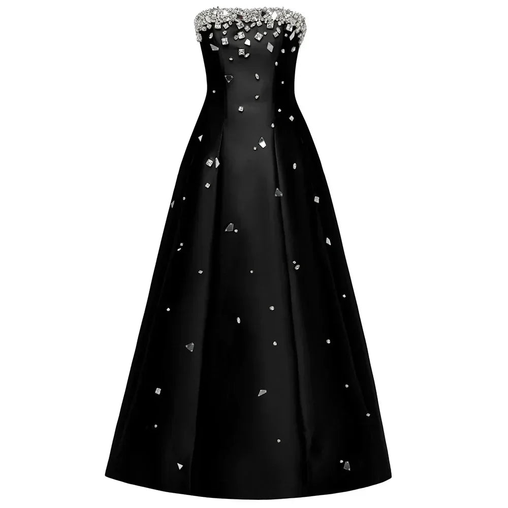 Luxury Dubai Black Beaded Evening Dress for Women 2025 Elegant Arabic Wedding Birthday Party Formal Gowns LA72498