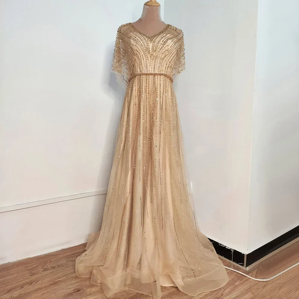 Luxury Dubai Red A-Line Elegant Evening Dresses Half Sleeves BeadedFor Woman Wedding Party 2025 LA70458