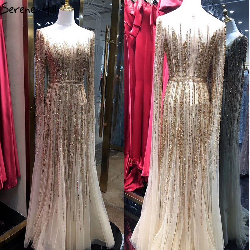 Luxury Gold Beading A-Line Cape Sleeves Evening Gown For Woman Dresses 2025 Fromal Dress LA70637