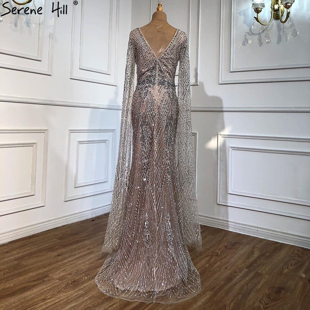 Luxury Grey Lace Elegant Mermaid Evening Dresses Gowns 2025 Cape Sleeves Sexy For Women Party LA70857