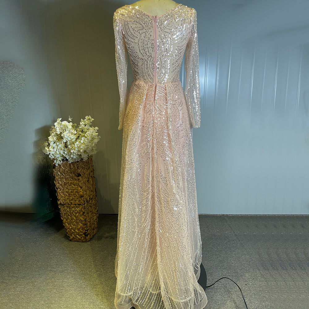Moslim Perzik Overrok Avond Jurken 2025 Luxe Kralen Elegant Mermaid Voor Vrouwen Party LA71494