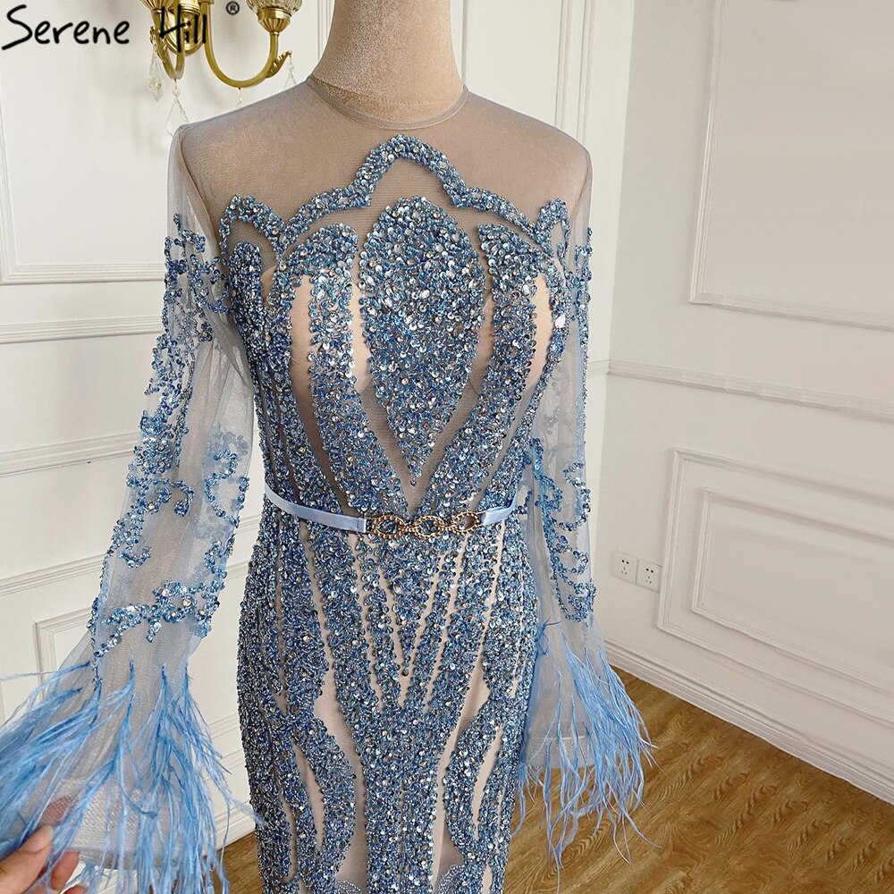 Muslim Blue Detachable Skirt Evening Dresses Gowns 2025 Feathers Beaded Mermaid Luxury For Women Party LA60932A