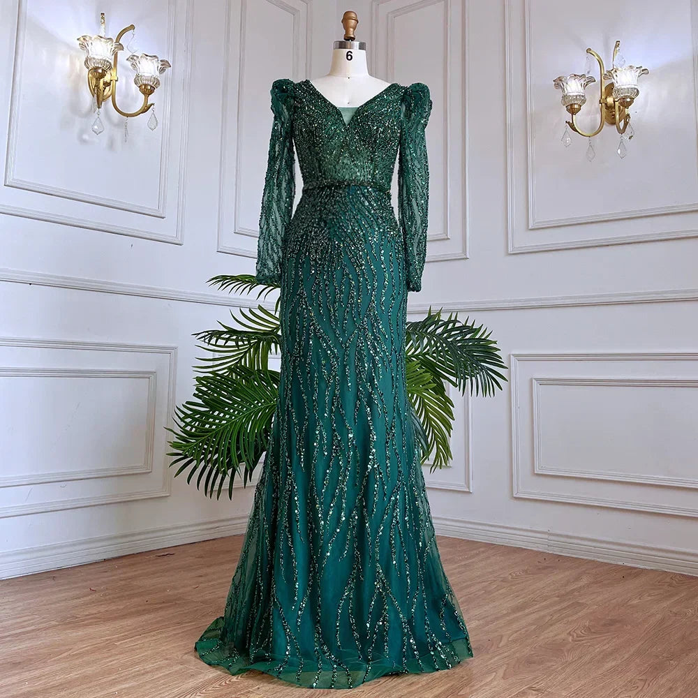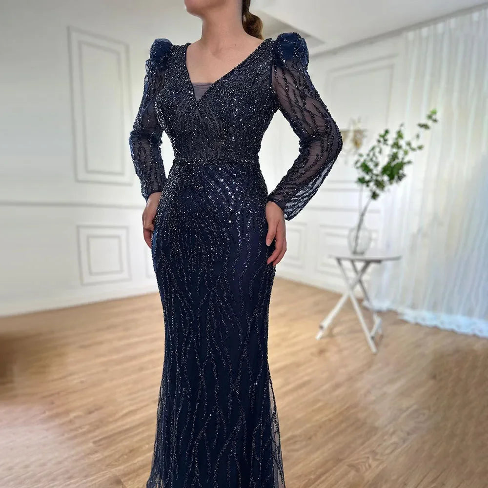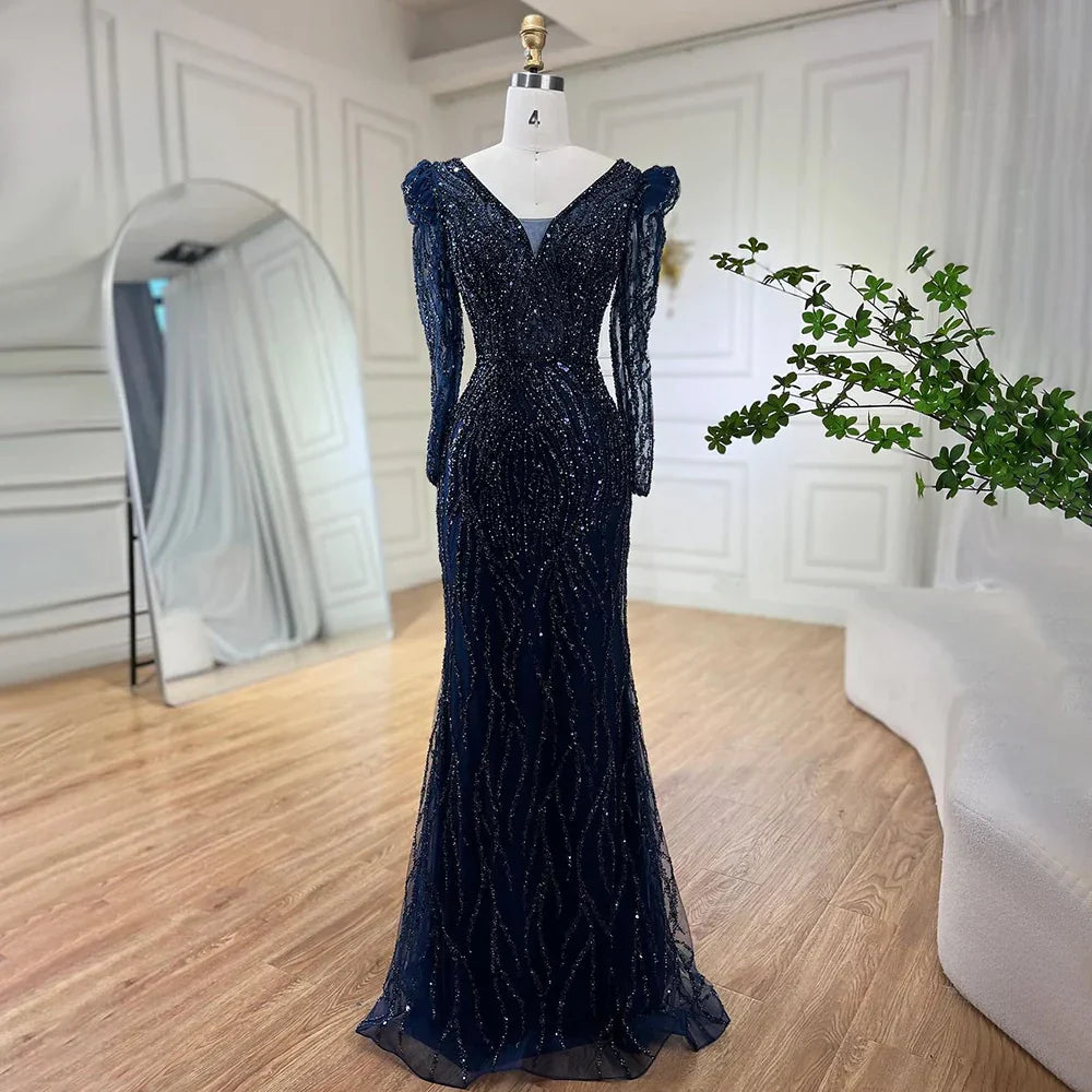 Muslim Blue Elegant Mermaid Beaded Arabic Luxury Evening Dresses Gowns for Women Wedding Party 2025 LA71931
