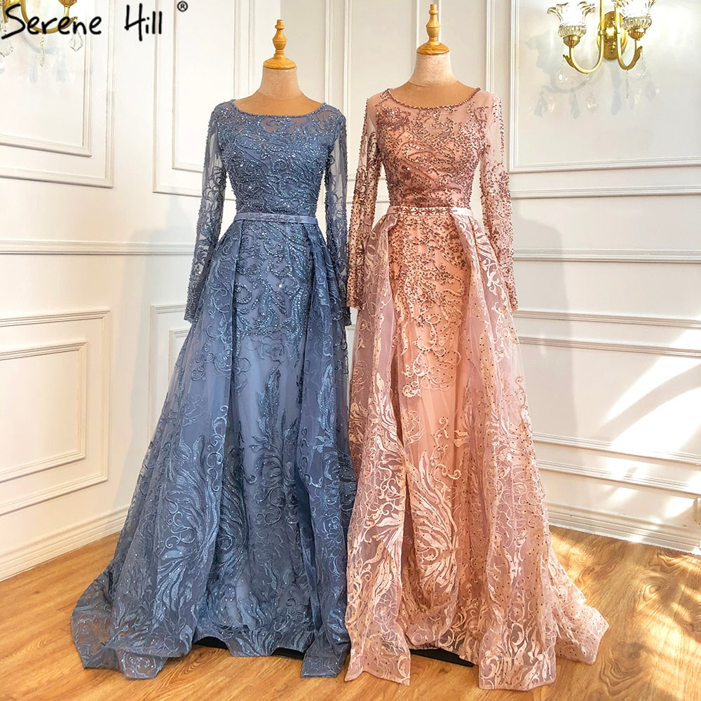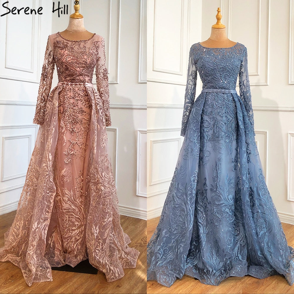 Muslim Blue Lace Beaded Luxury Evening Dresses Gowns 2025 O-Neck Mermaid Elegant For Women Party LA70834