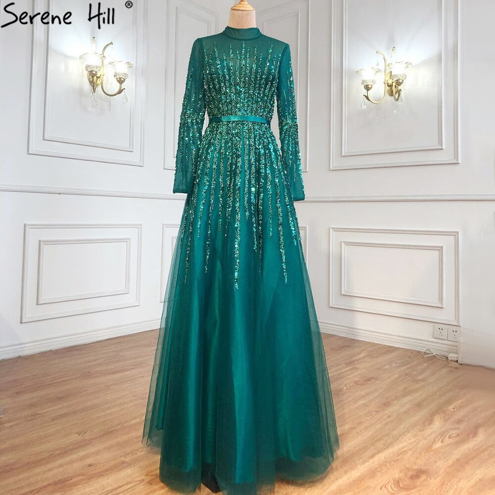 Muslim Blue Luxury Beaded Crystal A-Line Evening Dresses Gowns 2025 Luxury Beaded Crystal For Women Party LA70927H