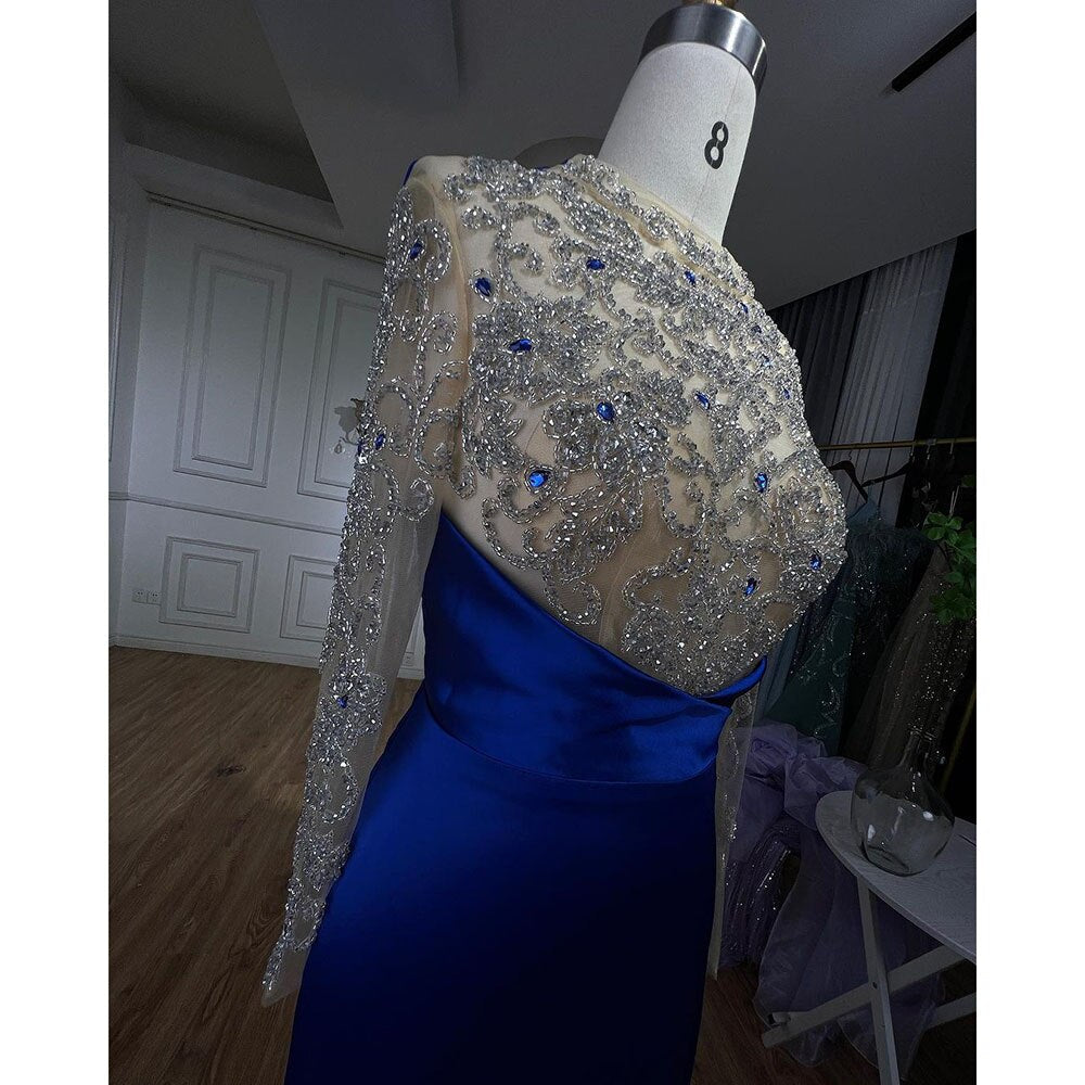 Muslim Blue Mermaid Luxury Beaded Arabic Elegant Long Evening Dresses Gowns For Women Wedding Party 2025 LA72107