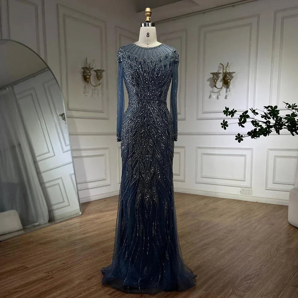 Muslim Blue Mermaid Luxury Beaded Dubai Long Evening Dresses Gowns for Women Wedding Party 2025 LA71999L