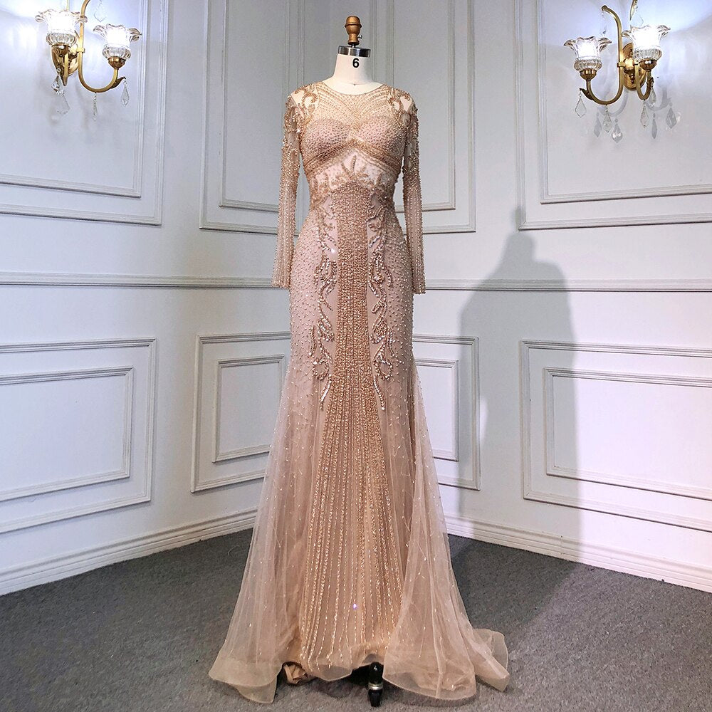Muslim Caramel Evening Dresses Gowns Luxury Beading Elegant Mermaid 2025 For Women Party LA70289