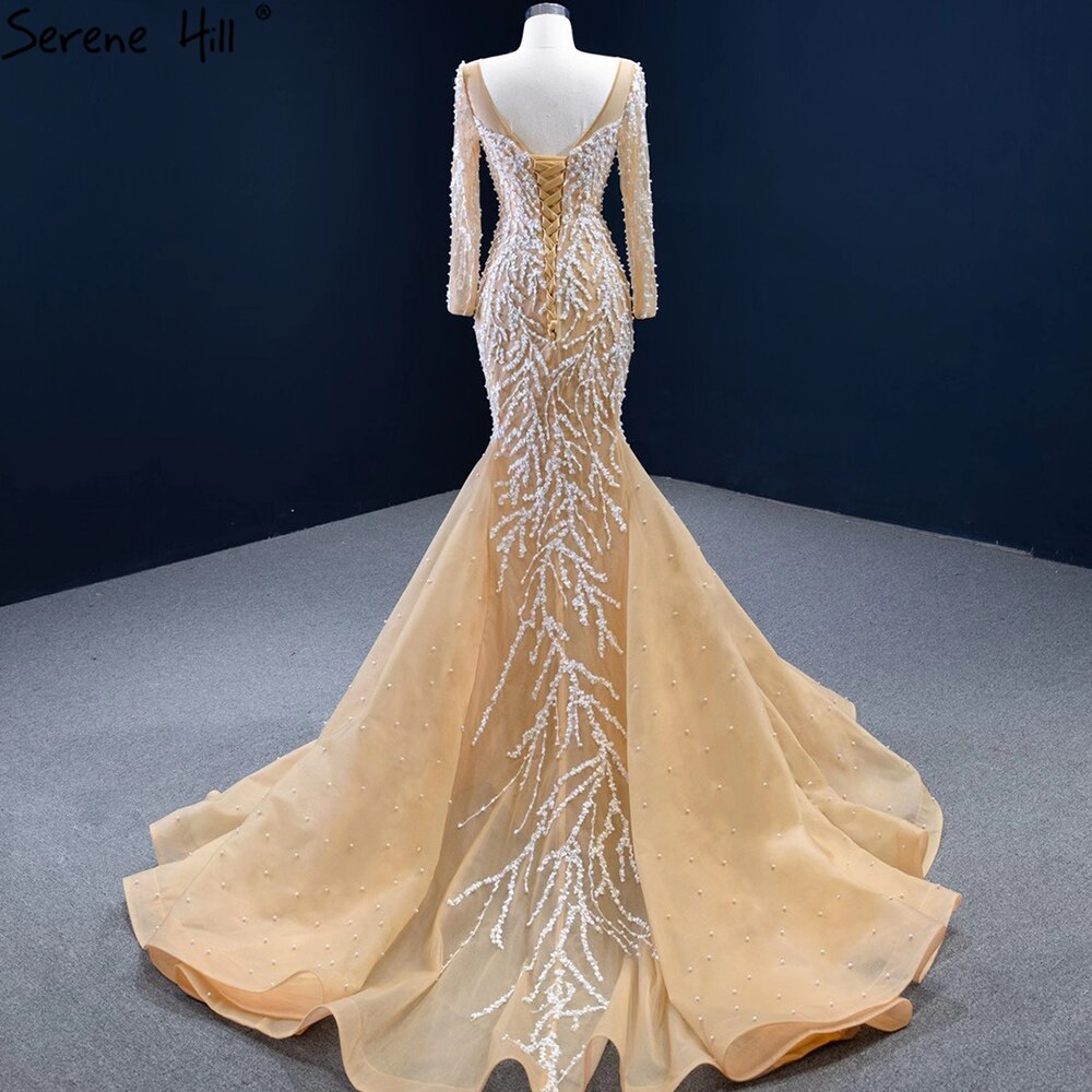 Muslim Champange Mermaid Evening Dresses 2025 Luxury Beading Elegant Party Gowns For Women HM67211