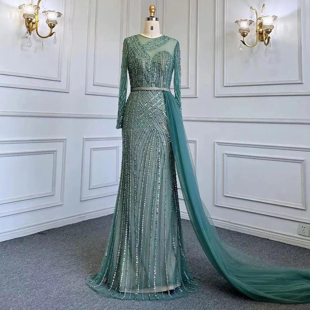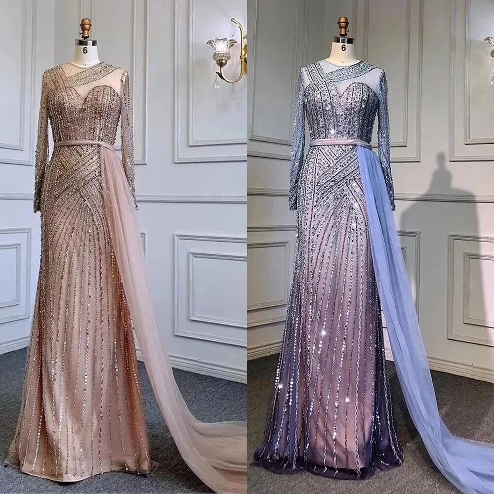 Muslim Gold Mermaid Elegant Beaded Luxury Dubai Evening Dresses Gowns For Women Wedding Party 2025 LA71429