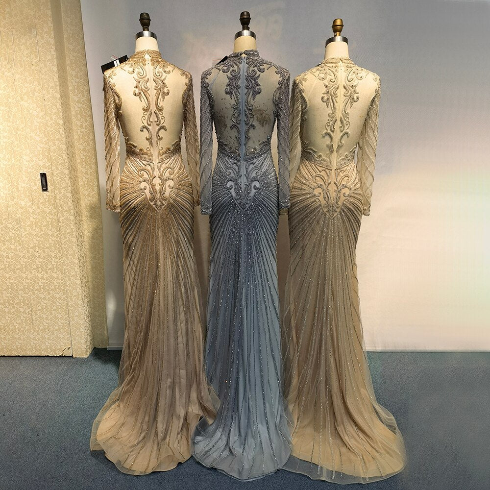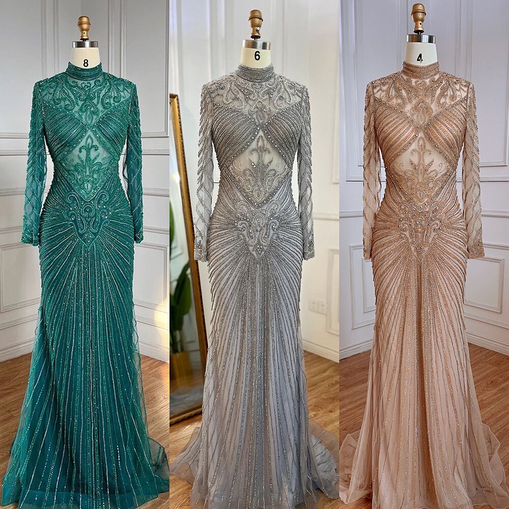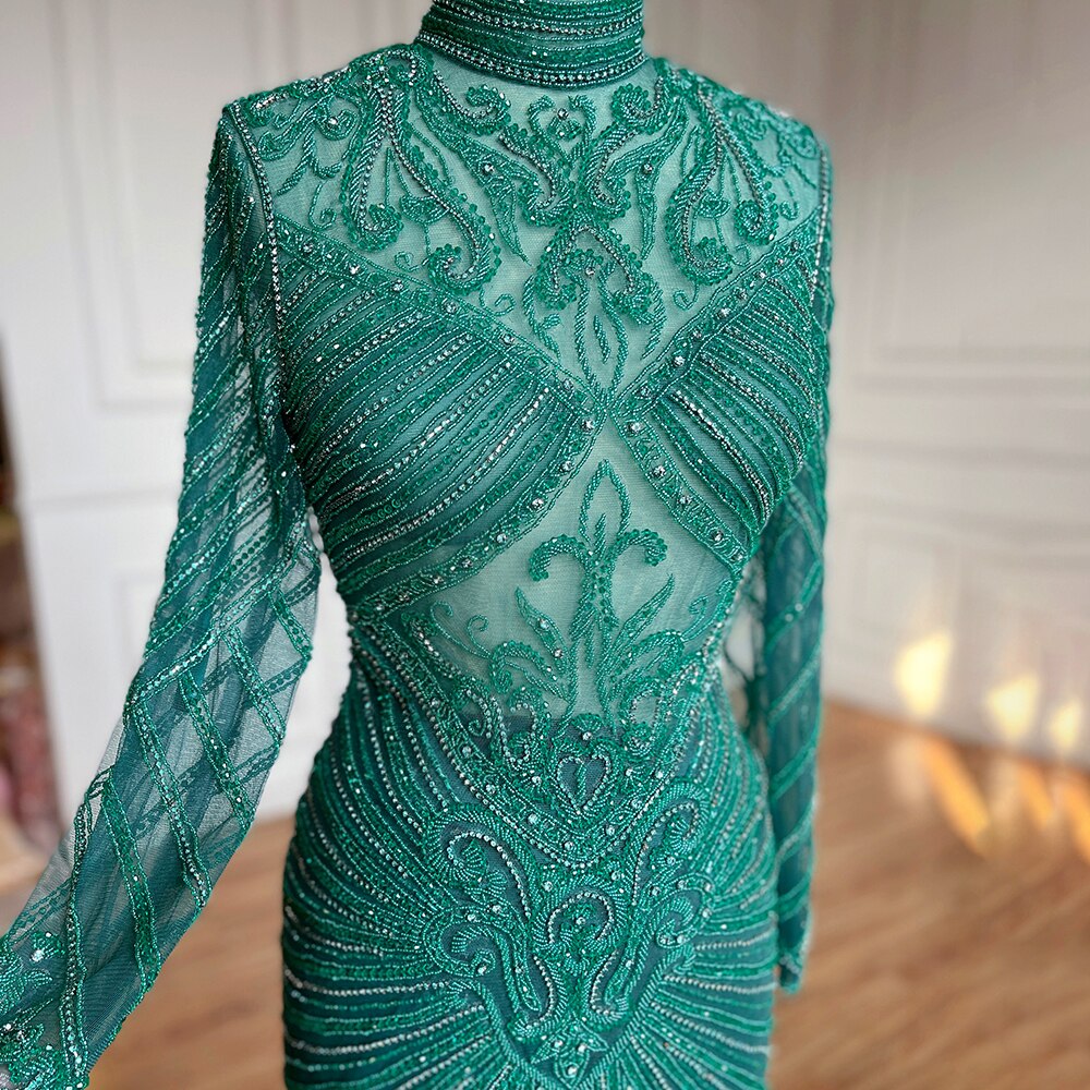Muslim Green Mermaid Elegant High Neck Luxury Beaded Evening Dresses Gowns 2025 For Women Party LA71776