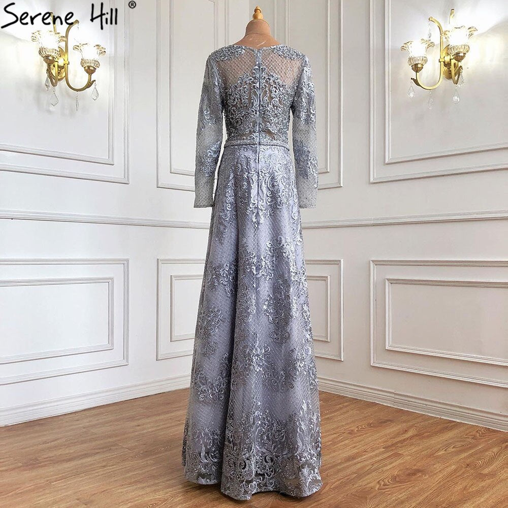 Muslim Grey A-Line Evening Dresses Gowns 2025 Luxury Beaded Lace For Women Wedding Party LA71308