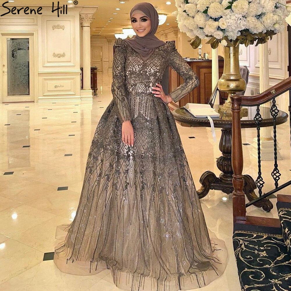 Muslim Grey Luxury A lineEvening Dresses Gowns 2025 A-Line Beading For Woman Wedding Party LA71126
