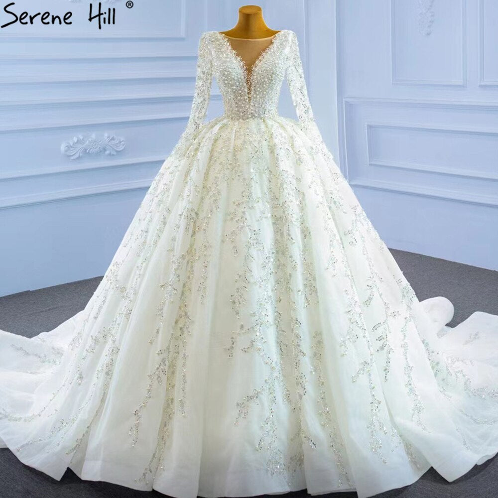 Muslim Ivory Luxury Wedding Dresses 2025 Beading Pearls Ball Gown Bridal Dress HM67260 Custom Made