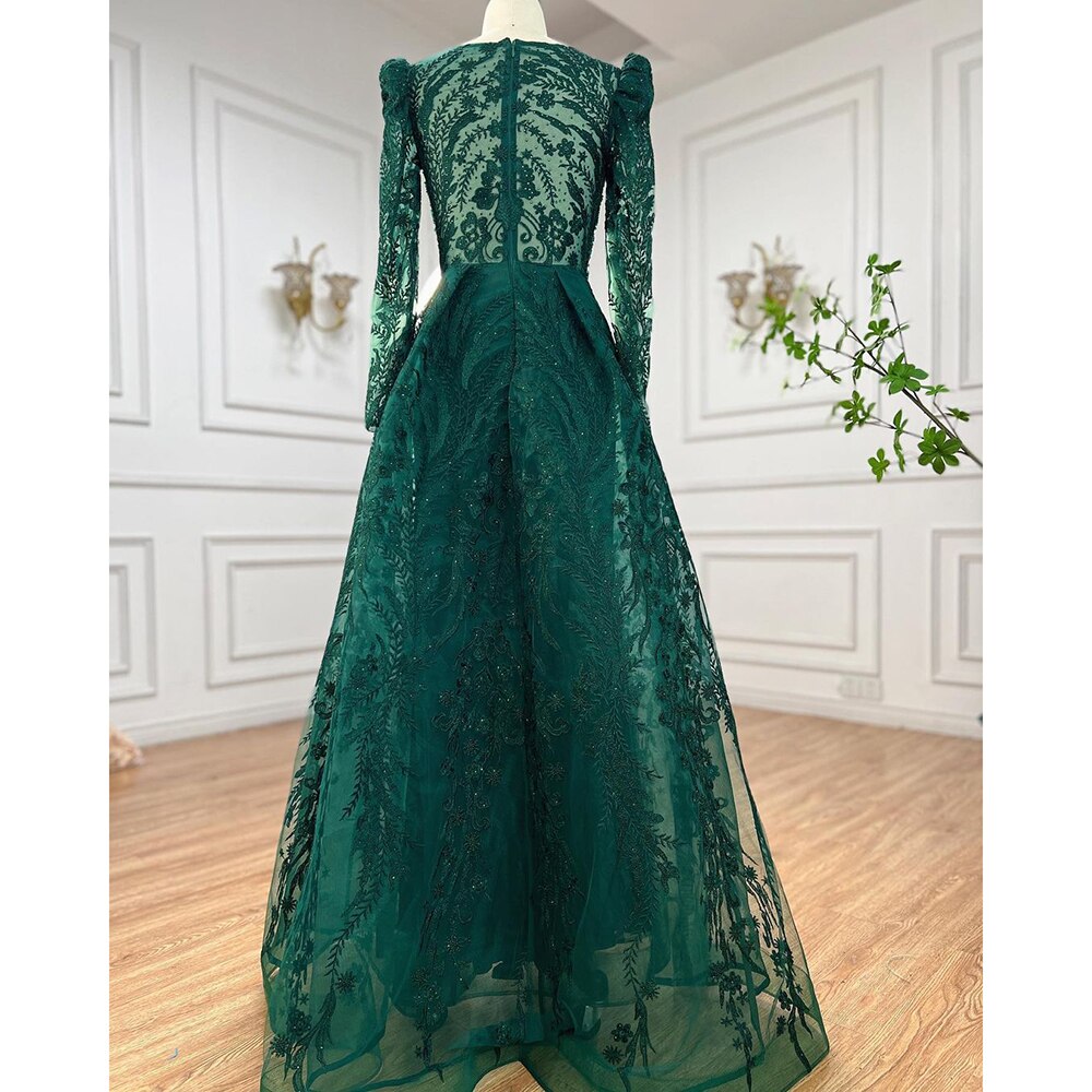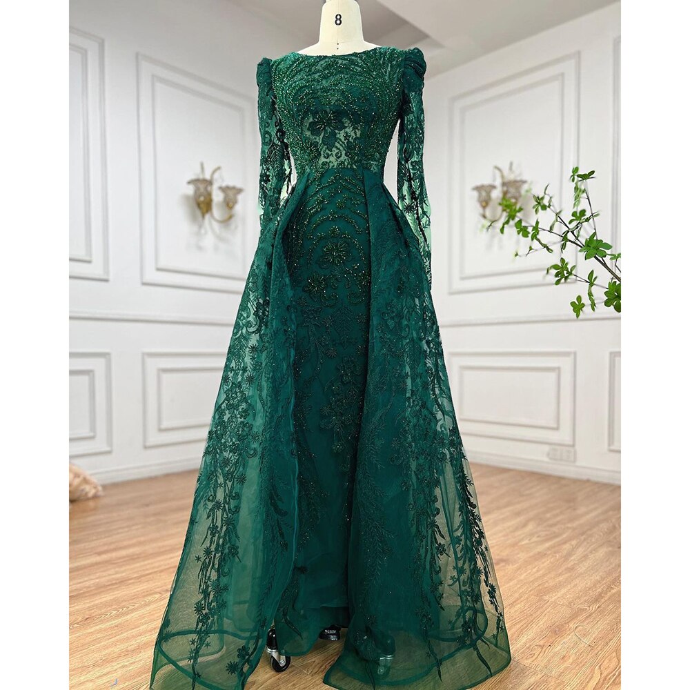Muslim Luxury Green Mermaid Evening Dress with Overskirt Arabic For Women Wedding Party 2025 LA71610A