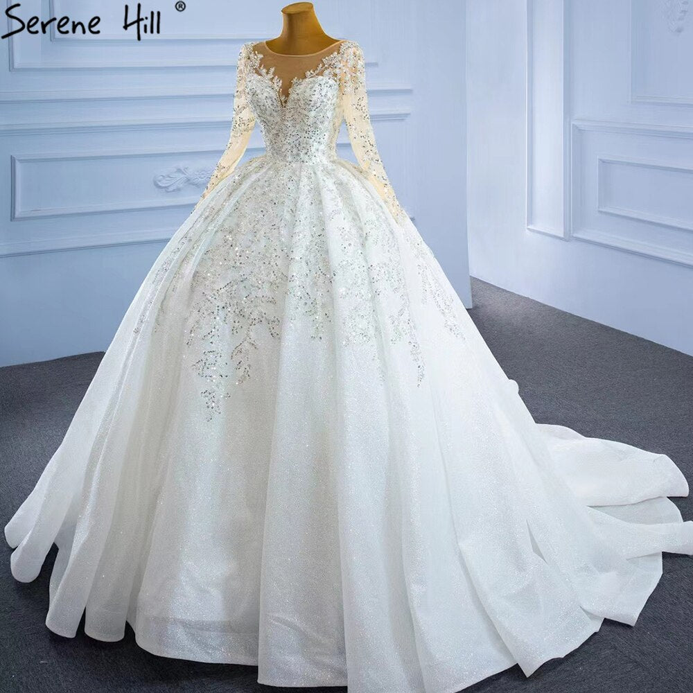 Muslim Luxury Wedding Dresses 2025 Beading Pearls Sexy With Train Bridal Dress HM67257 Custom Made